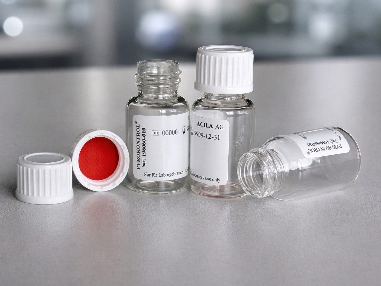 Les flacons d’échantillonnage en verre PYROKONTROL® avec bouchon à vis sont utilisables pour le test des endotoxines bactériennes.